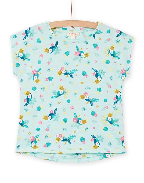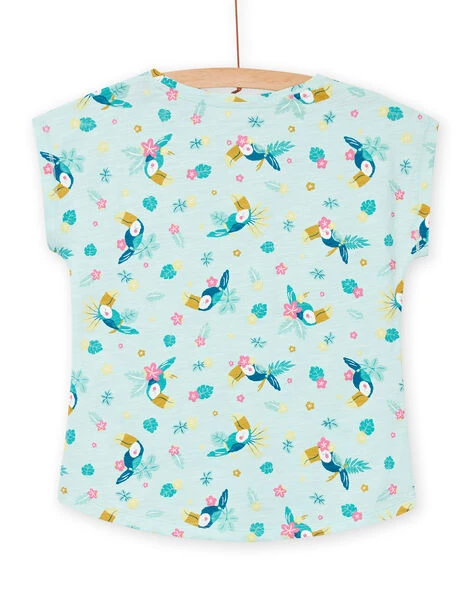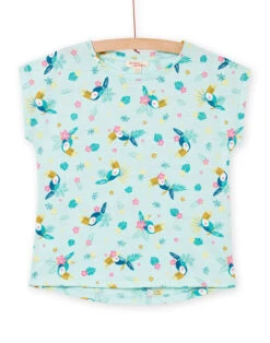 Child Girl’s Ice Blue Parrot And Floral T-shirt