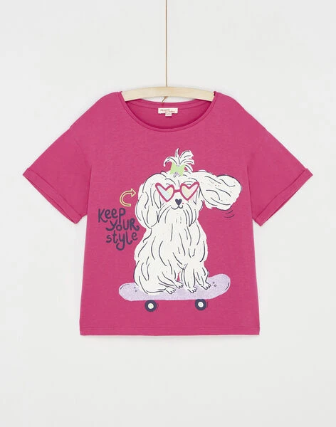 Fuchsia t-shirt with dog animation.