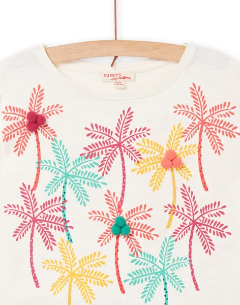 Short Sleeves Palm Tree Animation T-shirt Child Girl Ecru